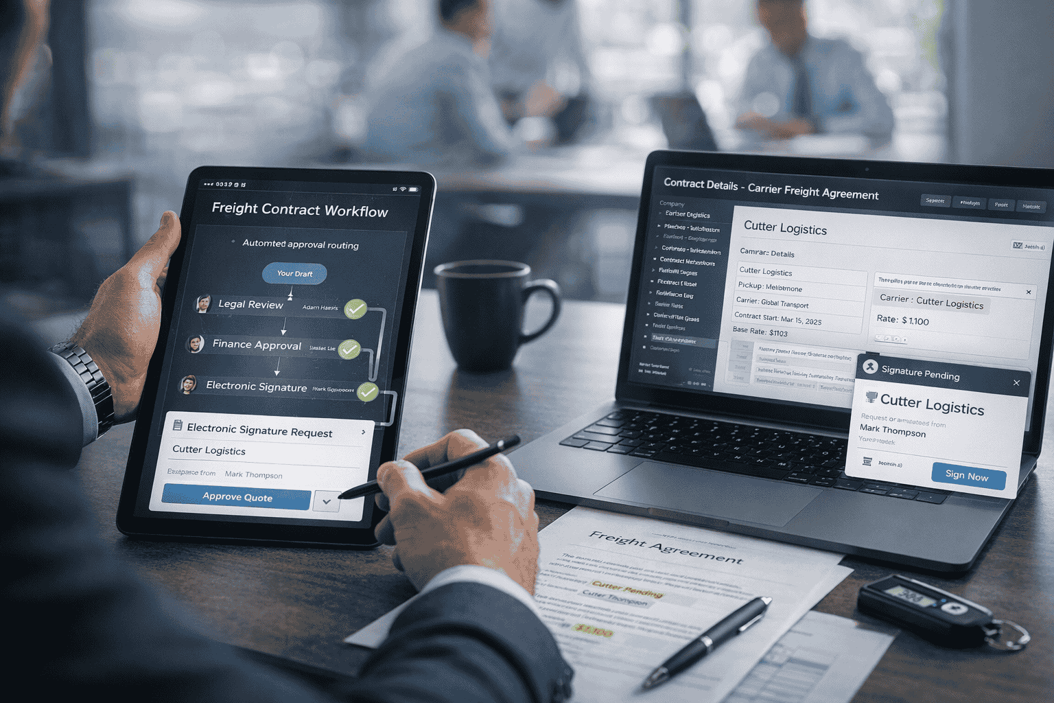 Freight contract management software can also automate entire workflows, including drafting, reviewing, and approval processes. Once a contract is drafted, it’s routed automatically to the appropriate stakeholders, reducing delays and bottlenecks. For instance, a contract for a new shipping route is drafted, then automatically sent to the legal team for review, followed by the finance team for rate validation, before being passed to the procurement manager for final approval.