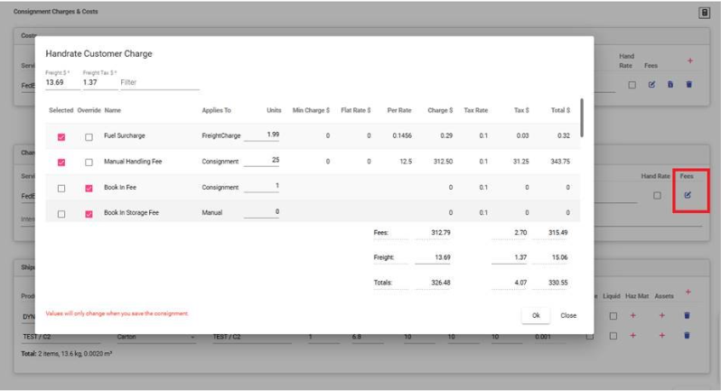 - Hand Rates, Fuel Surcharge, Fees, and Tax managed through a dedicated cost panel